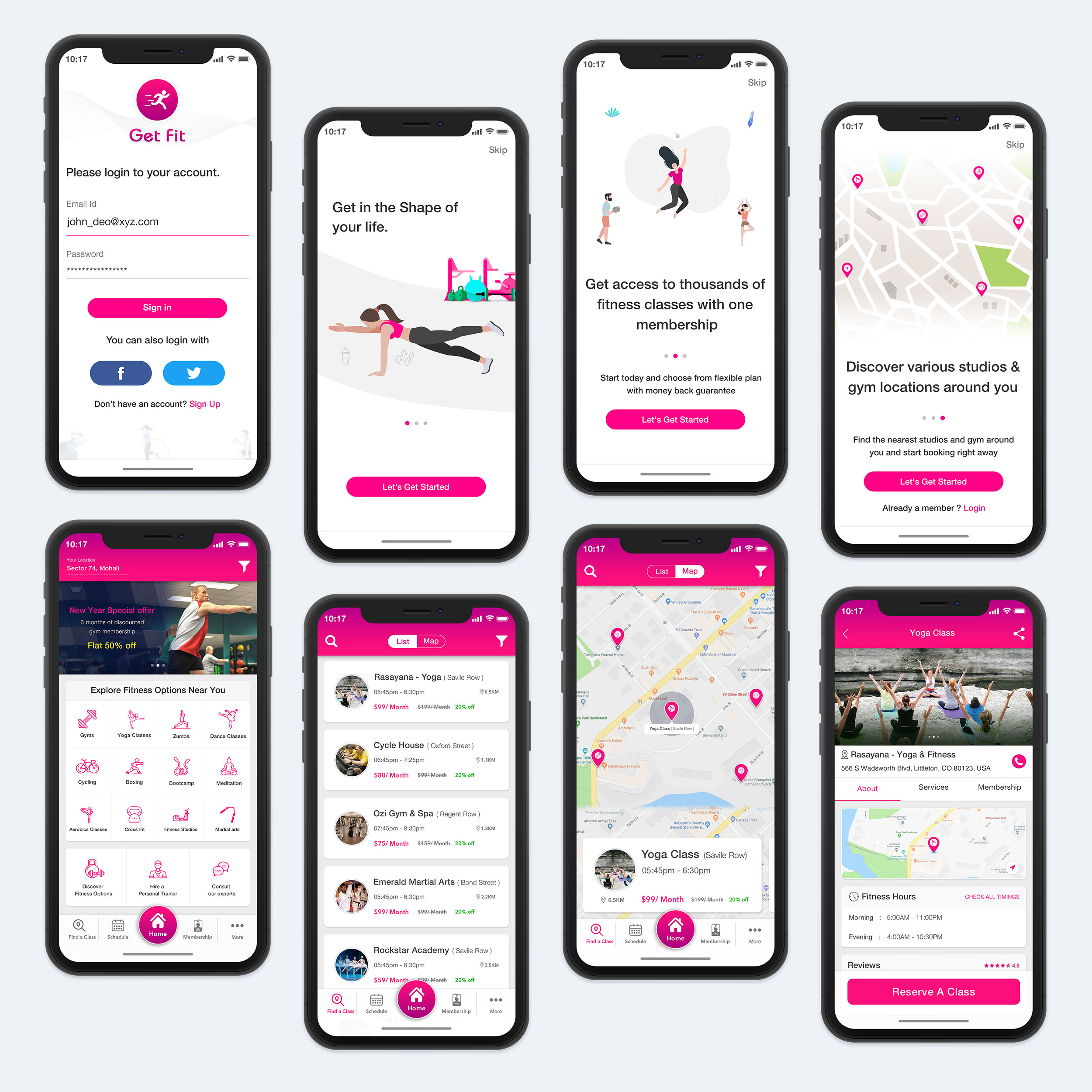 GET FIT – Find NearBy Fitness Classes App UI Kit