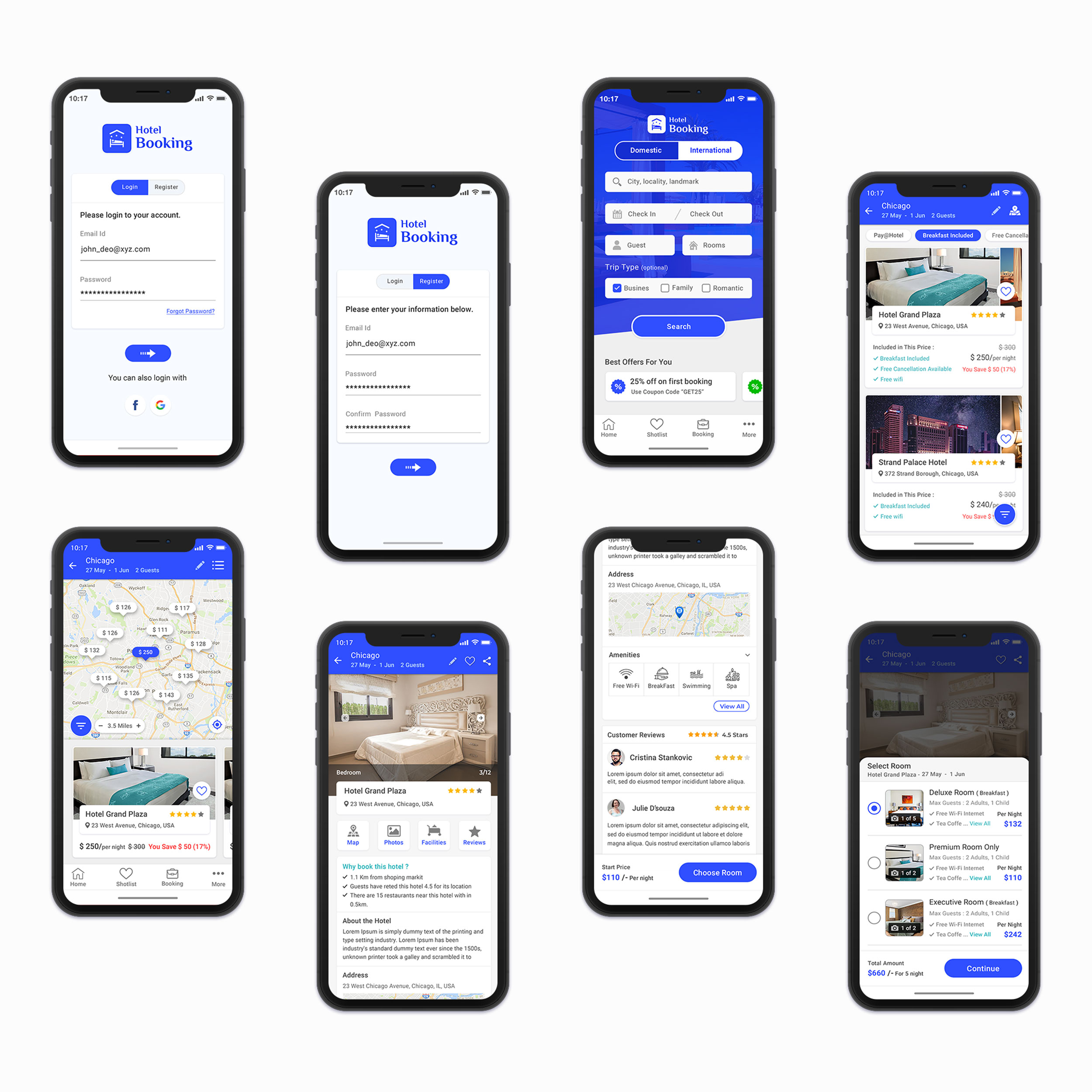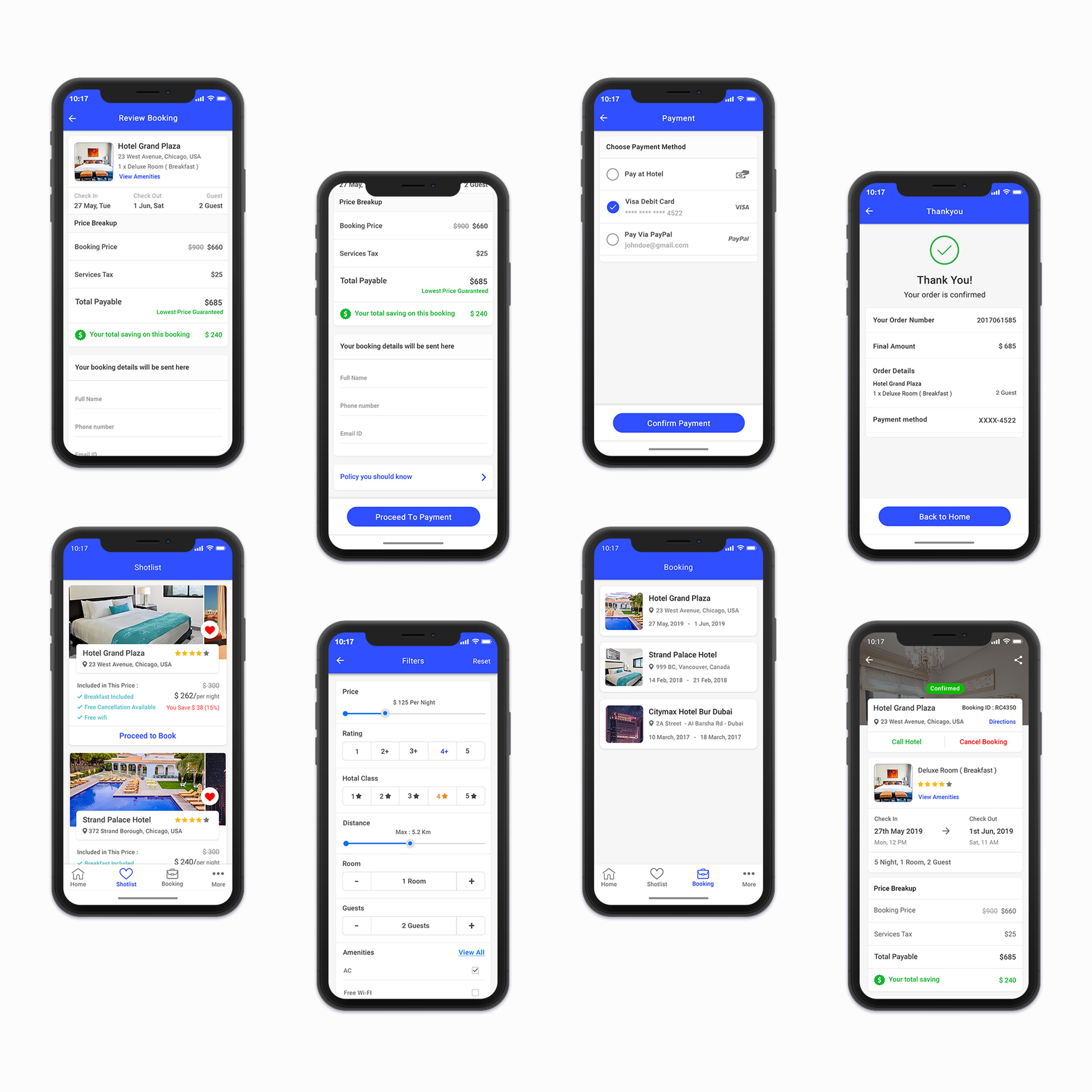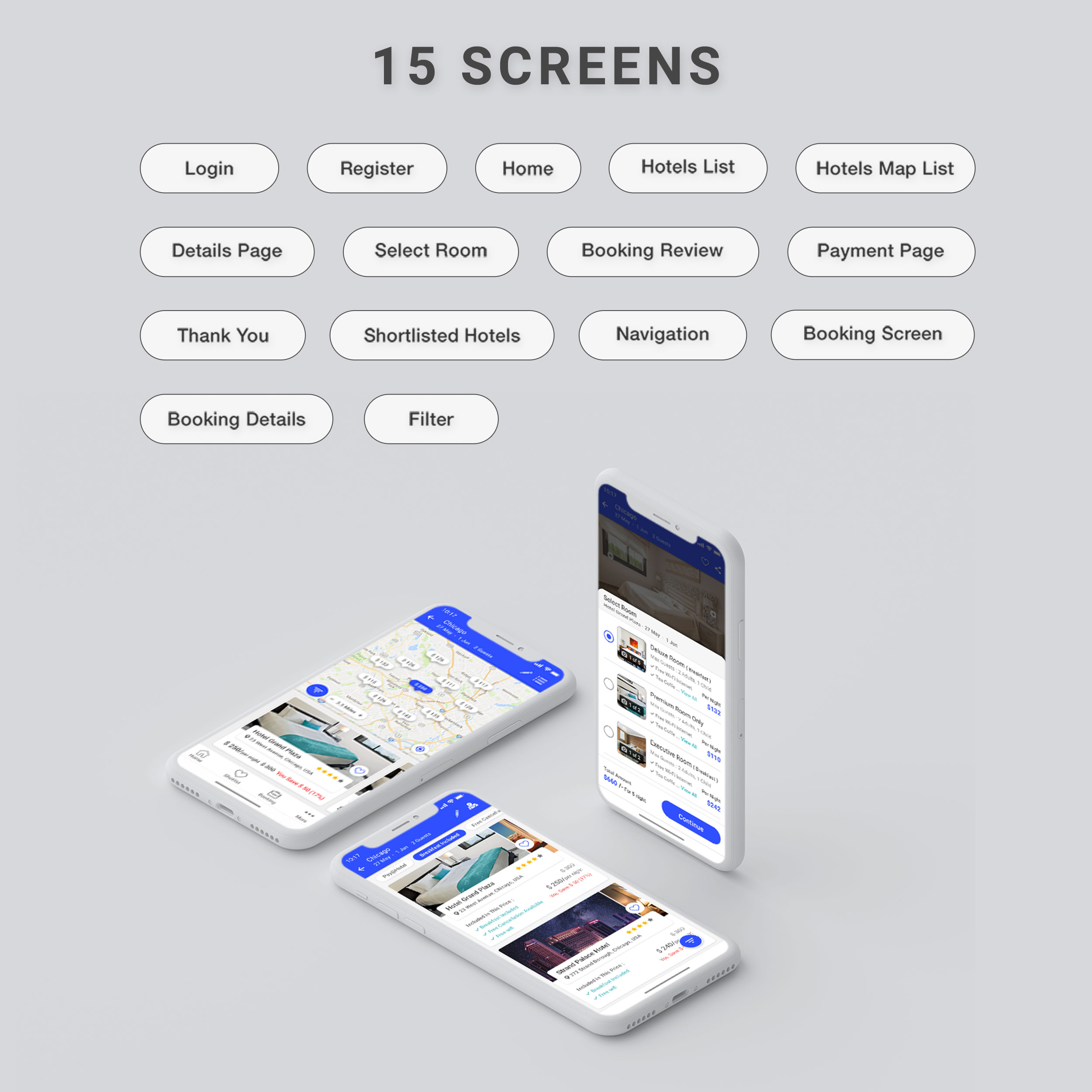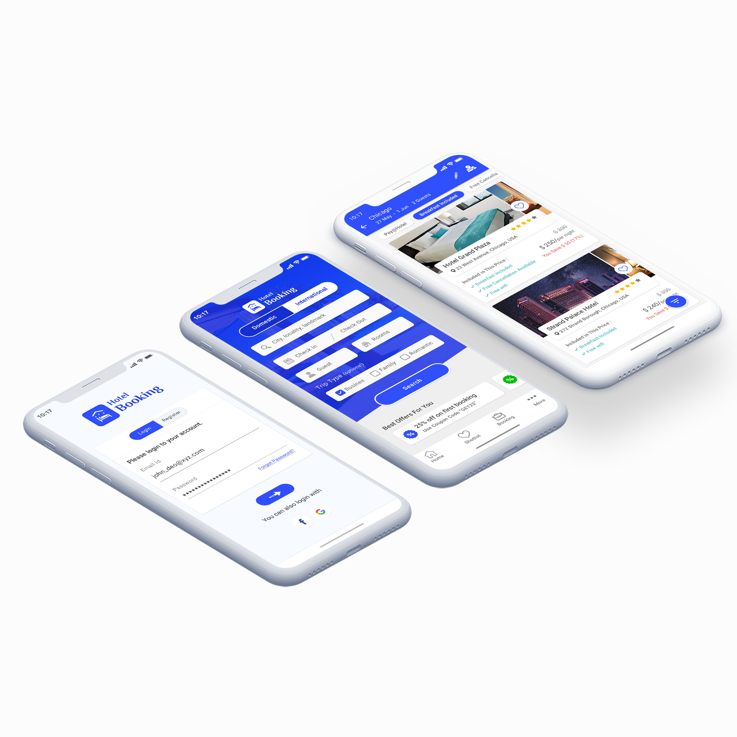 Hotel Booking app UI Kit, designed especially for Android and iOS. It is perfect for anyone looking to create an app that helps users to find best hotels. UI kit include the workflow to search hotels, View hotel details and available offers, Make the search easy using search filter.